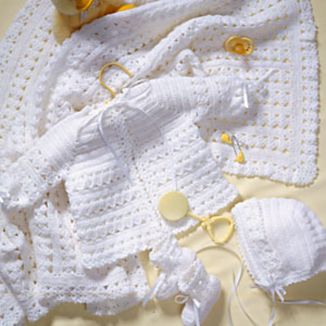 Lacy Layette Crochet Pattern ~ 6pce Lacy Crochet Layette Sizes 0 3 And 6 Months Yarnpassion. Steel #10 (1.30 mm) and steel #7 (1.65 mm) or sizes needed to obtain gauge. See more ideas about crochet baby, baby blanket crochet, baby shawl. Your sweet little one will look adorable in this matching crochet jacket bonnet and booties set. 773 x 1024 jpeg 261 кб. The patterns are easy to follow and they are free.